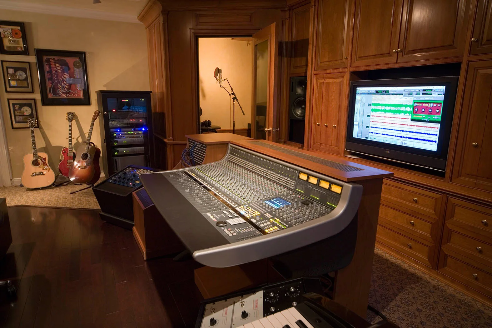 Built for publishing company Denise Rich Songs LLC in Ms. Rich's personal penthouse overlooking central park, this studio is based around a 24-channel Solid State Logic AWS 900+ console and Apogee digital audio interfaces (endorsements from both companies were secured). The room features a floated floor, custom cabinetry, assorted vintage outboard gear, and soffit-mounted Genelec 1032a monitors. Mike oversaw the design, construction and wiring of the entire room, which was fortunate enough to grace the pages of Mix Magazine and host legends like Patti Labelle, Natalie Cole, Dionne Warwick, and the Jonas Brothers.